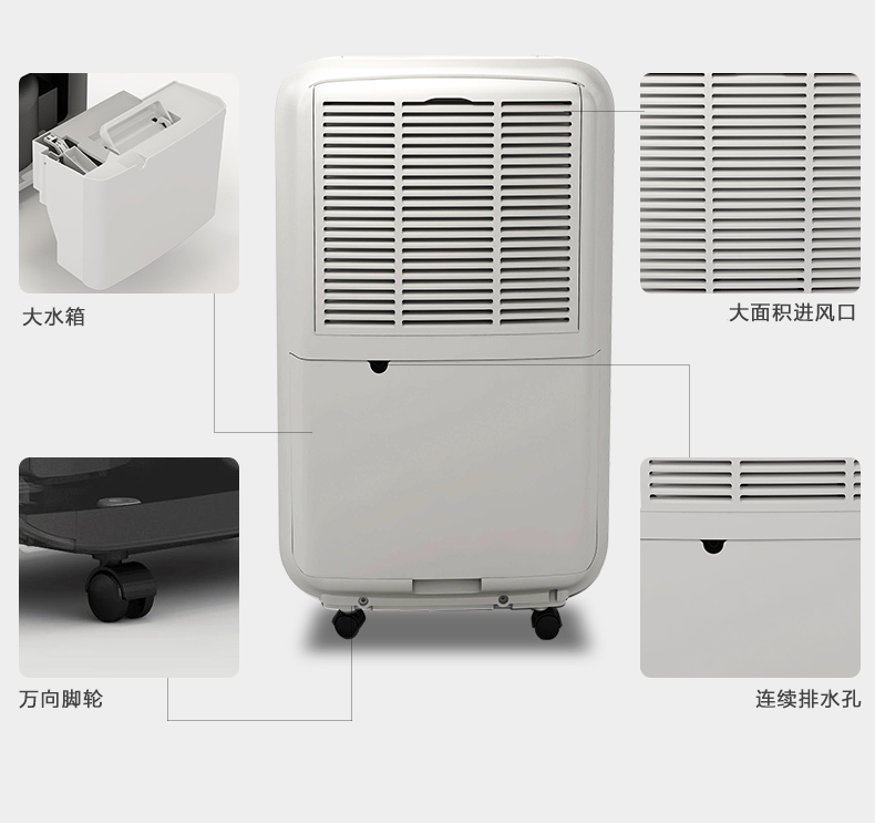 工業(yè)除濕機(jī)外觀權(quán)重值不高,乃至能夠說(shuō)成帶萬(wàn)向腳輪的白鐵皮小箱子,但這也是有緣故的。工業(yè)除濕機(jī)的塑料外殼與家用除濕機(jī)的塑膠機(jī)殼對(duì)比,承擔(dān)碰撞的抗壓強(qiáng)度更高,終究在工作環(huán)境中,磕磕碰碰是一切正常的狀況。